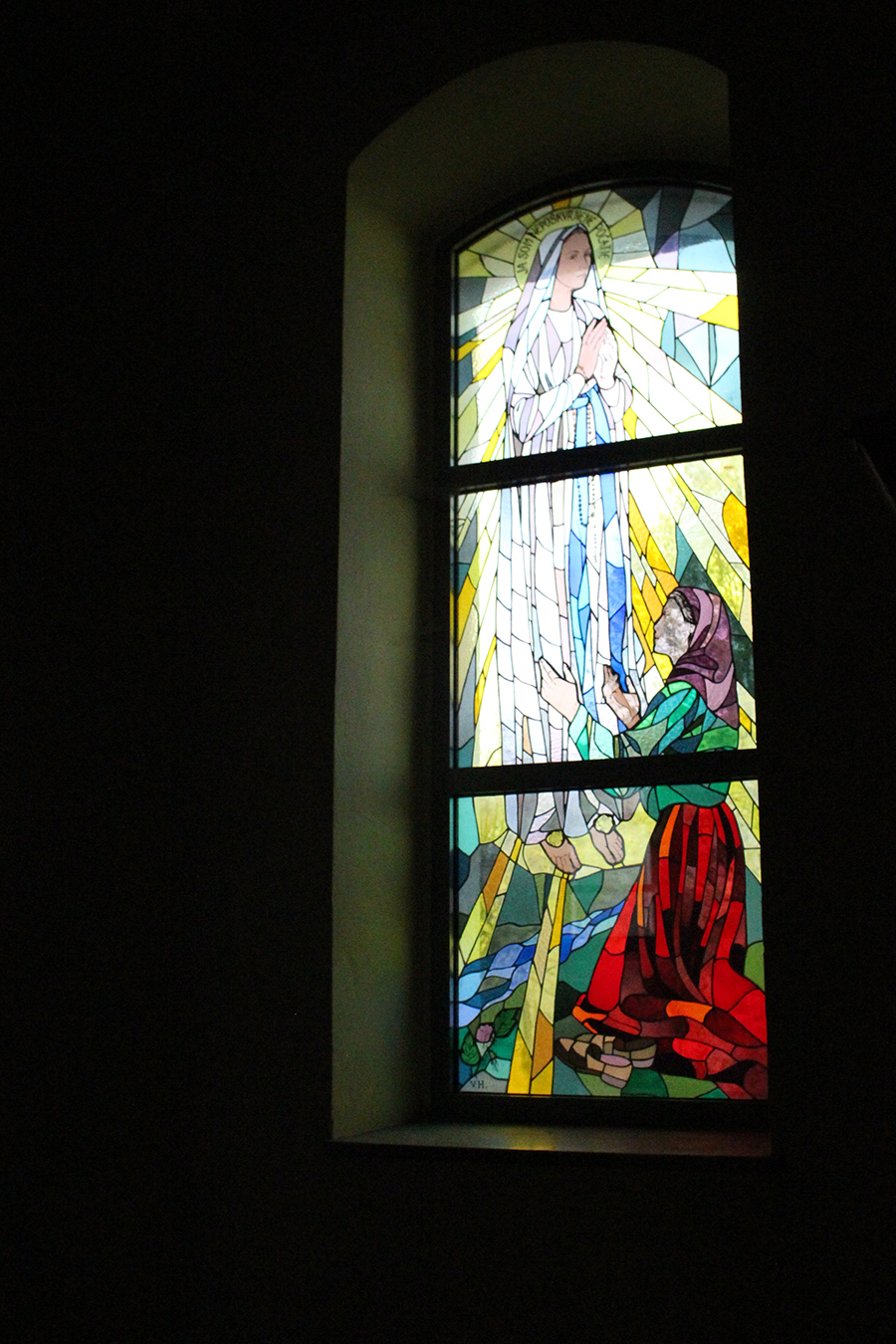 Kostol ma tri oltáre. Celková výška kostola je približne 45 metrov. Samotný dvojramenný kríž na vrchole veže má výšku 2 metre. V kostole je 11 vitrážových okien. Najväčšie okno meria 3,5m a je v ňom vyobrazená Najsvätejšia Trojica. Dve okná sú trojmetrové a je v nich Svätá rodina a výjav zo zjavenie v Lurdoch – P. Mária a sv. Bernadeta. V ďalších oknách je naznačený plást zo včelieho úľa. Na 50. výročie osadenia pôvodných vitráži sa podarilo obnoviť všetkých jedenásť okien a rámov.