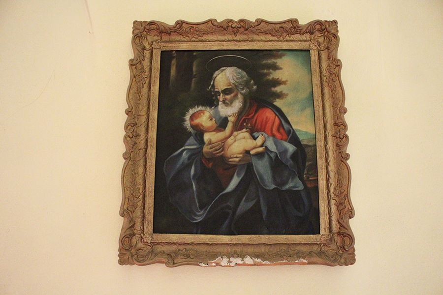 Obrazy. Sv. Jozefa — na chóre  //  Obraz Ukrižovania — Olejomaľba na plátne z 18.storočia.  //   Obraz Zvestovanie Pána — Olejomaľba na plátne z 18. stor.  //  Obraz Pozadie Betlehema — Olejomaľba na plátne z 18. stor. od Maxa Bacskaya.